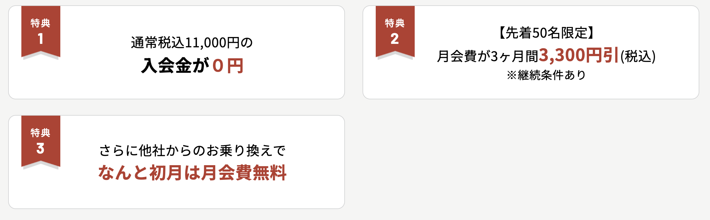 オープンを記念して、先着50名様限定の特別プランをご用意いたしました。入会金無料に加え、月会費が3ヶ月間お得になるなど、今が一番お得に始められるタイミングです。